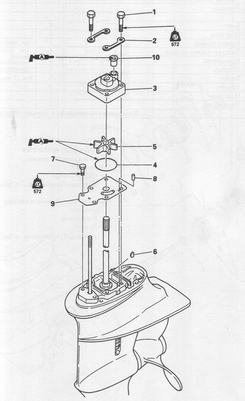 Первое что нам придется сделать – это снять редуктор и отделить его от дейдвуда открутив 4 нижних винта тягу переключения передач. Тут, думаю, ни у кого вопросов не возникнет, тут все просто. Эту процедуру мы не будем подробно описывать в нашей статье, а сосредоточимся на главном. Далее отделив дейдвуд от редуктора можно приступать к разборке самой помпы.